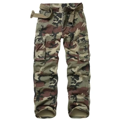 Material: Men's work trousers are composed of 100% cotton, which are breathable, sweat-absorbent, comfortable,rugged, long-lasting and resistant to wear and stains, making them suitable for outdoor activities, leisure wear and even the hardest work duties. Features: Zip-Fly with button closure, camouflage design and solid colors,focus on details,relaxed fit, straight leg, maximum air circulation for comfort while ensuring freedom of movement, useful and roomy multiple pockets.The cargo trousers men are a wardrobe must for any man. Practical Multi-Pocket: The work trousers men equipped with 8 pockets in total: 2 slant hand pockets, 2 back pockets with buttons, 3 cargo pockets with buttons, and 1 tiny tool pocket without a flap. Store your wallet, tools, keys, mobile phone, small tactical equipment, and other personal belongings in an accessible and safe location. The camo trousers provide ample storage for all your essentials, ideal for work or leisure. Occasion: The men’s combat trousers are good for work ,casual wear and outdoor activities. For example, extreme sports, running, climbing, chasing, hiking, fishing, hunting ,tactical ,walking,and daily wear. Match with t-shirts and flats flats for a casual comfort look. Warm Tips: The belt is not included. Please take the reference of Our Size Chart for better fit before order. Machine wash cold setting keeps colors vibrant and ensures long-lasting durability,do not bleach.The black trousers men are good ideal gifts for your partner, father, son, friends, and loved ones on special occasions like Christmas, Valentine's Day, and New Year's Eve.