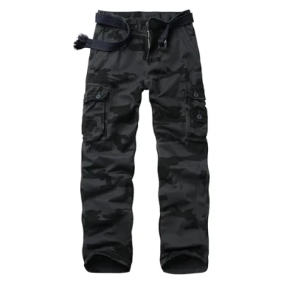 Material: Men's work trousers are composed of 100% cotton, which are breathable, sweat-absorbent, comfortable,rugged, long-lasting and resistant to wear and stains, making them suitable for outdoor activities, leisure wear and even the hardest work duties. Features: Zip-Fly with button closure, camouflage design and solid colors,focus on details,relaxed fit, straight leg, maximum air circulation for comfort while ensuring freedom of movement, useful and roomy multiple pockets.The cargo trousers men are a wardrobe must for any man. Practical Multi-Pocket: The work trousers men equipped with 8 pockets in total: 2 slant hand pockets, 2 back pockets with buttons, 3 cargo pockets with buttons, and 1 tiny tool pocket without a flap. Store your wallet, tools, keys, mobile phone, small tactical equipment, and other personal belongings in an accessible and safe location. The camo trousers provide ample storage for all your essentials, ideal for work or leisure. Occasion: The men’s combat trousers are good for work ,casual wear and outdoor activities. For example, extreme sports, running, climbing, chasing, hiking, fishing, hunting ,tactical ,walking,and daily wear. Match with t-shirts and flats flats for a casual comfort look. Warm Tips: The belt is not included. Please take the reference of Our Size Chart for better fit before order. Machine wash cold setting keeps colors vibrant and ensures long-lasting durability,do not bleach.The black trousers men are good ideal gifts for your partner, father, son, friends, and loved ones on special occasions like Christmas, Valentine's Day, and New Year's Eve.