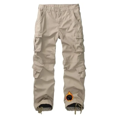 Material of the hiking trousers: The men’s hiking trousers are made of 35% cotton, 65% polyester and fleece lining which provides warmth, blocks cold air and keeps the wearer dry and comfortable in winter conditions. In addition, the work trousers are soft, long-lasting, windproof and scratch- and wear-resistant. Men's Cargo Trousers with Multi Pockets: The fleece lined trousers men include 8 pockets in total to hold different items. Carrying a hot water bottle, gloves, and other daily necessities is made simple with the two front slant pockets and the two back buttoned pockets. Tools and other personal items fit perfectly in the two large and two little buttoned side cargo pockets. The thermal trousers men are practical for all winter outdoor pursuits, such as hiking, skiing and hunting. Features:The camouflage trousers are designed with straight leg openings and drawstrings at the ankle to fit with boots,which can prevent the entry of snow and wind when you're out doing outdoor activities.They are surprisingly good at blocking cold. You will feel comfortable and warm when wearing the men's fleece-lined pants. Additionally, the reinforced crotch construction makes these tactical trousers sturdy. Occasions: A variety of wintertime outdoor activities, including hiking ,fishing, hunting, trekking, camping, climbing, skiing, snowboarding, jungle excursions and work on chilly snowy days, are appropriate for the cargo pants. Good Gift:The heated trousers are well-made, windproof,long-lasting, ripstop, and scratch-resistant. So these work pants are a thoughtful gift for a father, partner, boyfriend, child, friend on Valentine's Day, Halloween, Christmas, New year or any other special event.