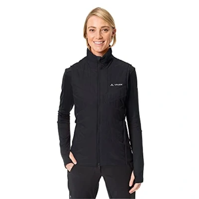 Heat insulation: the padded insulation vest with PrimaLoft Silver Insulation Eco reliably keeps you warm and dries quickly. The lightweight sports vest provides heat protection during ski and winter tours Freedom of movement: the elastic stretch inserts of the winter vest for women are breathable and ensure maximum freedom of movement. The body-hugging cut ensures comfort Functional: Equipped with 2-way zip and two front pockets, the VAUDE Sesvenna women's vest offers practical features. The softly lined pockets remain easily accessible even with a backpack Versatile: the VAUDE women's vest is the ideal companion for ski tours, winter mountain tours and trekking. The small pack size makes the lightweight vest for women particularly practical Green Shape: The women's vest carries the VAUDE Green Shape label and is made from recycled, bluesign certified materials. Eco Finish ensures environmentally friendly water repellency without PFC