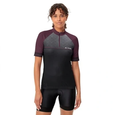 Features: the road bike jersey comes with a short zip, a small collar and 3 spacious, slanted back pockets. An all-round cycling shirt with practical features Quick-drying: thanks to the breathable and quick-drying fabric of the road bike shirt, the skin stays dry and fresh. Prevents skin irritation and improves performance when driving Fit: thanks to the short zip, small collar and the short sleeves, the shirt has a perfect fit for cycling. The women's short-sleeved cycling shirt is therefore ideal for summer tours Comfort: with a comfortable fit, the women's cycling shirt offers optimal freedom of movement. The cycling shirt is suitable for both professional and leisure cyclists Sustainable: VAUDE has been climate-neutral since 2022. Currently unavoidable emissions are fully compensated via "myclimate" through certified gold standard climate protection projects
