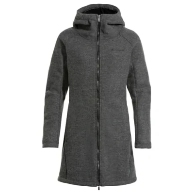 Transitional coat made of wool mix for modern everyday life: warm Modern coat for women: the attached hood and the wide waistband on the sleeves and hem are eye-catching on this generously cut coat Practical details: the two-way front zip allows the wearer quick access to the trouser pockets underneath, two front pockets warm cold fingers Cosy and warm: the soft, environmentally friendly material offers a high level of comfort and a pleasant feeling on cool days Green Shape label: the Vaude Green Shape label stands for an environmentally friendly, functional product made from sustainable materials