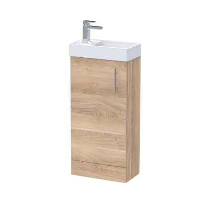 Vault Floor Standing 1 Door Vanity Unit with Basin 400mm Wide Bleached Oak Nuie