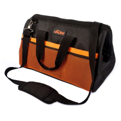 General description The Vaunt Essentials 18" Wide Opening Tool Bag is designed for everyday use, providing ample storage and durability. With a combination of 6 external pockets and 8 internal pockets, this bag is perfect for organizing your tools and accessories. Made from tear-resistant nylon and featuring double strength stitching, it offers great value for money. Technical specifications Dimensions: 18 inches wide Material: Tear-resistant nylon Number of external pockets: 6 Number of internal pockets: 8 Stitching: Double strength Other information Includes padded shoulder strap