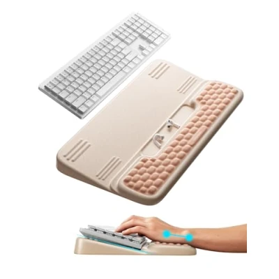 Stylish Pink Aesthetic & 2-in-1 Design – Features a soft pink color that adds a touch of personality and warmth to any desk. The 2-in-1 design functions as both a keyboard riser and a wrist rest, saving space and providing versatile support for both office and gaming setups Cloud-Like Memory Foam Comfort – Made with high-density, slow-rebound memory foam that gently conforms to the shape of your wrists. This cushions every keystroke, reduces pressure, and helps prevent fatigue and discomfort during long typing or gaming sessions Dual-Tilt Angles for Ergonomics – Offers two adjustable tilt angles (3° and 12.5°) to promote a neutral wrist posture. This ergonomic design helps reduce strain on the wrists, elbows, and shoulders, whether for focused work or light browsing Secure Non-Slip Silicone Base – Equipped with an anti-skid silicone base that keeps the wrist rest firmly anchored to your desk. This ensures stable and reliable support without any unwanted sliding during intense typing or gaming All-Day Comfort for Multiple Scenarios– The breathable Lycra cover provides lasting comfort. It's an ideal accessory for various activities like office work, studying, writing, and gaming, helping to alleviate soreness and support wrist health throughout the day