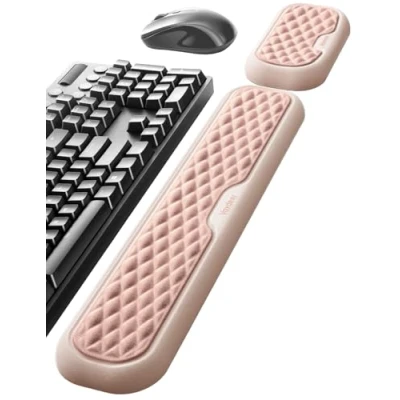 [Soft Ergonomic Wrist Support] Designed to gently support wrists and palms, helping reduce strain during typing, studying, or gaming sessions. [Cloud-Like Memory Foam Comfort] High-density memory foam delivers soft yet supportive cushioning that slowly rebounds for all-day comfort. [Textured Design for Gentle Touch] Diamond-pattern texture and smooth contours provide a comfortable feel while maintaining proper wrist positioning. [Non-Slip Base for Secure Placement] Anti-skid silicone bottom keeps the wrist rest firmly in place on desks and tables. [Cute Desk Accessory & Gift Idea] Stylish white and pink colour design makes it a perfect addition to home offices, study desks, or as a thoughtful gift.