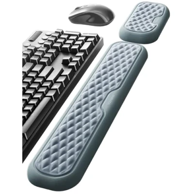 [Comfort-Focused Ergonomic Design] Ergonomic wrist shape supports natural hand alignment, helping reduce discomfort during typing, studying, or extended computer use. [Soft Memory Foam with Breathable Cover] High-quality memory foam provides balanced softness and support, while the breathable surface keeps your wrists comfortable all day. [Wave & Diamond Texture for Daily Comfort] Textured surface gently supports wrists and palms, offering a comfortable touch that helps ease fatigue over long sessions. [Stable Anti-Slip Silicone Base] Non-skid bottom ensures the wrist rest stays securely in place, even during fast typing or mouse movements. [Clean Look for Modern Workspaces] Minimalist light blue design pairs well with modern desks, home offices, and study setups.