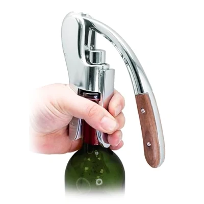 Smooth and Effortless Opening: Professional lever system extracts cork quickly and accurately, reducing the required force and preventing breakage. Chrome finish with wood details: combination of materials that brings elegance, strength and a distinguished aesthetic in any service. Protective coated spiral: designed to gently penetrate the cork and prevent damage, ensuring clean and effective removal. Robust and durable construction - Selected materials for reliability, stability and optimal performance during continued use. PREMIUM GIFT PRESENTATION: Elegant case ideal for wine enthusiasts, special occasions and quality details.
