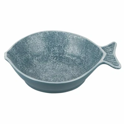 Paros Single Ceramic Soup Plate Matt marble finish; Fish design Coastal style; Size: L 24 x 21 x H 6 cm Not dishwasher safe; not microwave safe Also ideal as a sauce bowl. Colour: turquoise white rim