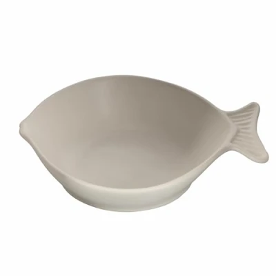 Kos Single Ceramic Soup Plate Matt finish; Fish design Coastal style; Size: L 24 x 21 x H 6 cm Not dishwasher safe; not microwave safe Also ideal as a sauce bowl. Colour: white