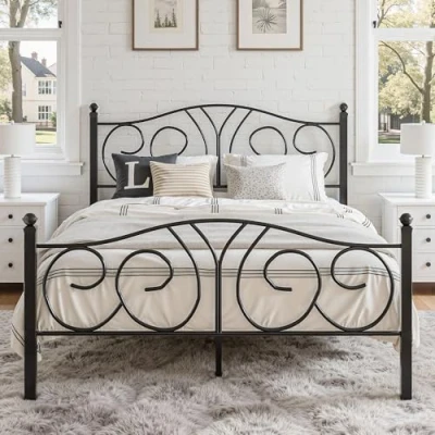 【Timeless Elegance】Embrace the allure of our classic metal bed frame double size, gracefully designed to withstand rust and scratches. With its enchanting headboard and footboard exuding a romantic aura, this bed frame seamlessly complements any bedroom or guest room style, be it vintage, industrial, or modern. It's a perfect fit for an exquisite touch of charm and sophistication. 【High Headboard Design】In contrast to other metal beds, double size bed frame boasts a gracefully elevated headboard that not only ensures superior head protection but also offers a cozy spot for sitting. Imagine leisurely propping up soft pillows behind your back, indulging in delightful moments of reading or leisurely watching TV. 【Robust and Dependable】Crafted entirely from a solid metal frame, double bed frame exudes strength, ensuring a remarkable load-bearing capacity, capable of holding weights of up to 250kg. With 11 metal slats and 3 center legs, you'll experience unwavering support for a truly restful sleep, free from any annoying squeaks or disturbances. 【Generous Storage Capacity】Double size bed frame gracefully rises 32-cm above the floor, presenting a perfect opportunity for effortless storage. You can utilize this space to neatly organize your clothes, toys, or quilts by simply placing storage boxes underneath the bed. 【Seamless Assembly Experience】Our exquisite metal double bed frame are conveniently packaged in a single flat-packed box, ensuring effortless home assembly. By following the provided instructions, you'll find yourself completing the assembly with ease, achieving a beautifully crafted bed frames.