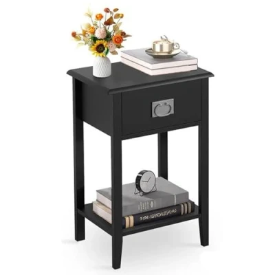 Solid and Durable: Made of high-quality E1 MDF, this bedside table is sturdy and durable to use. The surface is coated by a protective layer. Water, dust and slight scratches can be effectively resisted and the daily maintenance is pretty simple that a damp cloth is all you need. Easy-gliding Storage Drawer: The bedside table has a storage drawer with a antique brass drawer pull to give it a stylish, modern finish. Smooth-gliding plastic runners allow you to easily open and close the drawer. Functional Storage: This 2-tier nightstand features a pull-out drawer and a large-capacity lower shelf cabinet, offering ample storage space to keep your various essentials organized and within reach. Stunning Addition to Any Room: The end table can used as an end table beside your sofa or a simple storage cabinet to organize your stuff. Bedside table add a fresh feeling to any room, ideal for any furniture, diverse home decoration and most interior style. Easy Assembly: All of the necessary accessories are included in the package, with an illustrated instruction. It measures H60cm x W40cm x D30cm (approx.) when fully assembled.