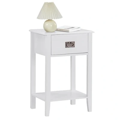 VECELO Bedside Table White with Shelf & Drawer Nightstand for Living Room Bedroom, Engineered Wood, 40x30x60 cm