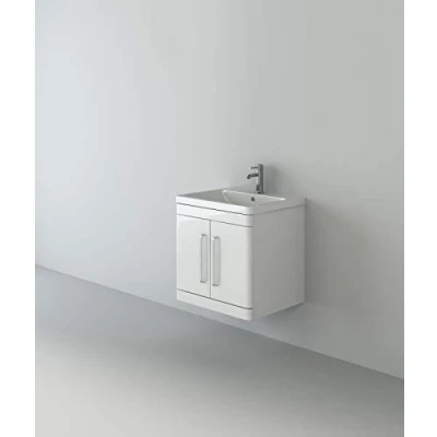 FLOATING DESIGN - The Ceti wall mounted basin cabinet gives the impresion of floating in mid air. The mounting brackets are completely concealed behind the unit, giving a neat and appealing look. EXQUISITE DESIGN - Completely contemporary in design, Ceti features a high gloss white finish, smooth curved corners, a deep polymarble wash bowl and long chrome handles. READY ASSEMBLED - Ceti furniture comes completely built up (not flat pack). The integrated ceramic basin is included and easily fits on top of the cabinet without the need for complicated installation instructions. COMPLETE THE LOOK - For the complete bathroom suite look co-ordinate with matching WC units in the Ceti range - ORWC90, 0RWC95 DIMENSIONS - Height: 590mm, Width: 600mm, Depth: 450mm, Weight: 72.75254646 Pounds, Manufacturer: VeeBath