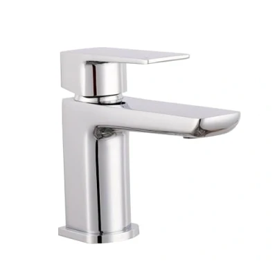 VeeBath Lagoon Soft Square Basin Mixer with Pop Up Waste Modern Chrome Finish, Single Lever Control, G1/2" BSP Inlet, Deck Mounted Bathroom Taps, Bath and Taps