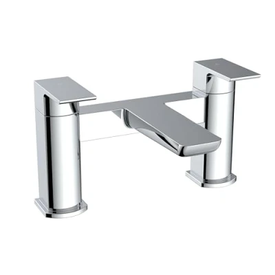 VeeBath Lagoon Soft Square Bath Filler Mixer Modern Chrome Finish, Dual Lever Control, G3/4" BSP Inlet, Deck Mounted Bathroom Taps Pair, and Basin