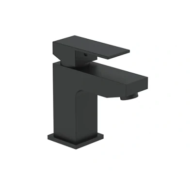 VeeBath Mist Mono Basin Mixer Tap with Waste Modern Matt Black Finish, Single Lever Control, G1/2" BSP Inlet, Deck Mounted Square Bathroom Taps, Sink for