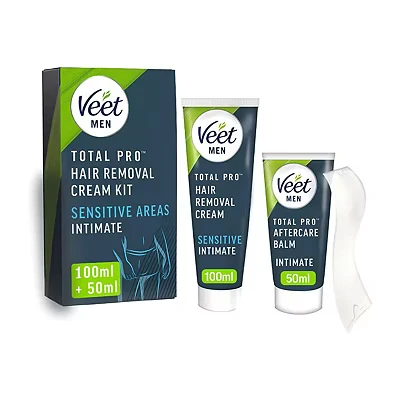 Veet Men Intimate Hair Removal Kit, Mens Cream 100ml, After Shave Balm 50ml, 1 Spatula, For Genitals, Pubic Removal,