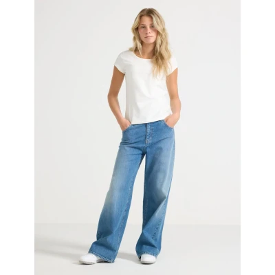 Jeans in cotton denim with a slight stretch, a regular waist and wide legs for a comfortable fit.