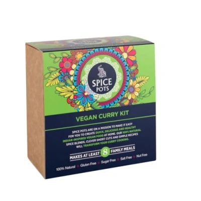 Vegan Curry Kit by Spice Pots 100% Natural Ingredients 4 x 40g Blends 8 Recipe Booklet Korma, Bhuna, Goan & Tandoori Masala Powder Gifts for Women Men