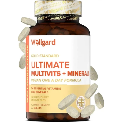 Vegan Multivitamins & Minerals by Wellgard Multivitamin Tablets for Men and Women with 24 Essential Active Vitamins Minerals, Made in UK