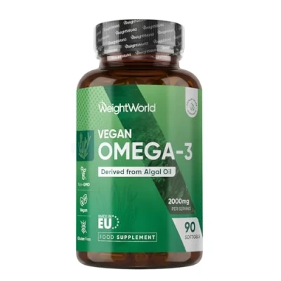 PLANT-BASED OMEGA GOODNESS: WeightWorld’s algae oil omega 3, sourced from algae oil, offers a plant-based way to get essential omega-3 fatty acids, particularly DHA and EPA. This algae-based source goes straight to the original producer of omega-3s in the marine food chain, making it a reliable choice. It provides a consistent way to include these important nutrients without relying on animal-based sources. 90 SOFTGELS - 45 DAYS SUPPLY: Each bottle offers 90 vegan omega 3 dha epa softgels, providing 45 days supply. With 2000mg of DHA and EPA-rich oil per serving. Suitable for those seeking a simple addition without unnecessary extras. WeightWorld's softgels offer a clean way to include omega-3 in daily routines, made to fit effortlessly into a variety of lifestyles DHA AND EPA RICH OIL: Unlike typical omega-3 sources derived from fish, these algae omega 3 softgels are made from Schizochytrium sp., a microalgae naturally rich in DHA and EPA. DHA contributes to maintenance of normal brain function. EPA and DHA contribute to the normal function of the heart. DHA and EPA contribute to the maintenance of normal blood triglyceride levels. DHA contributes to the maintenance of normal vision (EFSA). EASY TO TAKE & TRAVEL-FRIENDLY: These EPA & DHA upplements provide a simple way to incorporate Omega-3 into a daily routine. Take just 1 softgel with water. Moreover, these omega 3 vegan softgels are mess-free and easy to carry, making them convenient for use at home, work, or while travelling. In case of any concerns, feel free to reach out THE JOURNEY OF WEIGHTWORLD: Born from a passion for food supplements, WeightWorld has been growing since 2006. With nearly two decades of experience, the brand offers a wide range of products, including vitamins, minerals, plant-based supplements, devices, and more. Now reaching multiple countries, the focus remains on developing products that evolve with changing needs while staying true to the values that started it all.
