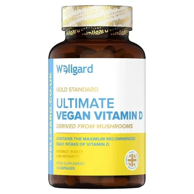 ULTIMATE VEGAN VITAMIN D 3000iu SUPPLEMENT - Our plant-based Vitamin D (Cholecalciferol from Mushrooms) is absorbable, effective, and free of any animal ingredients or nasty additives. Public Health England recommend all adults take a Vitamin D supplement every day, particularly during the autumn and winter months. CONTAINS THE UK MAXIMUM RECOMMENDED DAILY INTAKE OF VITAMIN D – A concentrated vegan formula providing 75µg of Vitamin D (Calciferol – mushroom origin) in a 1500% NRV dose that makes a difference. WHY TAKE A VITAMIN D SUPPLEMENT? Vitamin D contributes to the maintenance of normal bones and teeth, to muscle function and to immune function. Vitamin D also contributes to normal absorption/utilisation of calcium and phosphorus - as substantiated and authorised by EFSA (European Food Safety Authority). VEGAN-FRIENDLY & CLEAN FORMULATION - Vegans can have peace of mind knowing that Wellgard Ultimate Vegan Vitamin D capsules are 100% vegan. The formula is free from animal products or derivatives, gluten, wheat, yeast, milk, lactose, soy, artificial flavours, artificial sweeteners, preservatives. SUPPLEMENTS WITH INTEGRITY - Wellgard was created to celebrate integrity in its most humble and true form. We only use ingredients that either directly benefit your wellbeing or support the integrity of our formulations. So go ahead and look under the bonnet —we want you to.