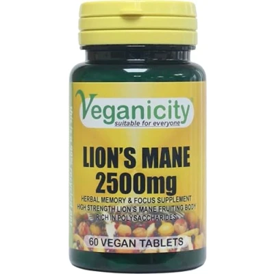 Veganicity Lion's Mane 2500mg : Memory & Mood Supplement 60 Tablets, in a Planet Friendly 99% Recycled Pot