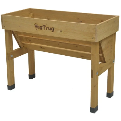 General description The VegTrug Small WallHugger is a versatile planter made from 100% certified cedar wood, treated with a water-based preservative. It features plastic feet covers, making it suitable for growing edible produce outdoors in all seasons. Designed for narrow and small spaces, this planter can be easily assembled from a flat pack and fits snugly against a wall, providing an ideal growing solution for limited areas. Technical specifications Material: 100% certified cedar wood Dimensions: L: 103cm, W: 46cm, H: 80cm Soil capacity: 170 litres Usage Perfect for growing a variety of plants, including deep-rooted produce at the back and shallow-rooted produce at the front. Helps reduce crop damage from slugs and other pests. Comfortable working height for gardening without bending, making it accessible for wheelchair users. Other information Includes a pre-formed liner that aids in keeping the soil healthy and well-aerated. The liner is self-draining and designed to gradually
