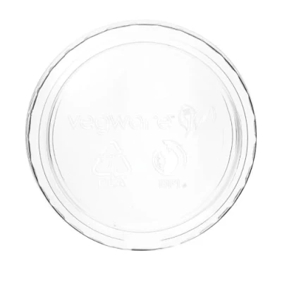 Disposable portion pot container lid. For use with Vegware 2-4oz portion pots. Made from PLA, a renewable material made from plants. No-hole lid. Commercially compostable where accepted. Colour: Clear. Size: to fit 2-4oz portion pot. Pack of 2000.