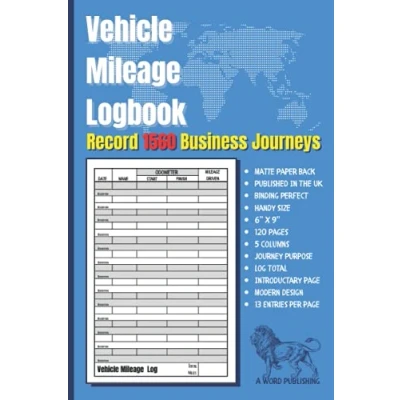 Vehicle Mileage Logbook: Record 1560 Business, Work or Personal Journeys
