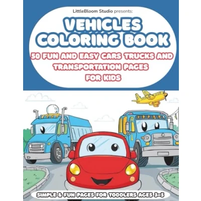 Vehicles Coloring Book: 50 Fun and Easy Cars, Trucks Transportation Pages for Kids (LittleBloom Studio Books)