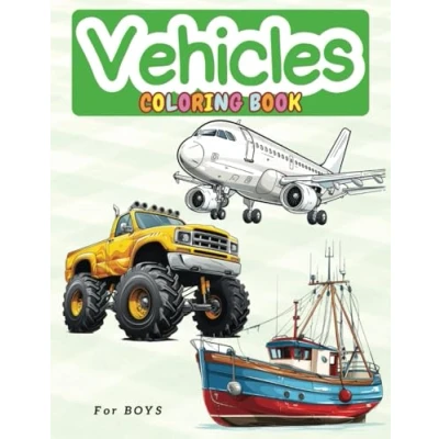 Vehicles coloring Book for Boys: 50 Easy and Fun pages of cars, airplanes ships boys, kids, children (Coloring Books Kids)