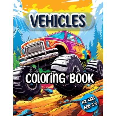 VEHICLES! Coloring Book For Kids Age 4 8: Jumbo Pages of Trucks, Nice Cars, Planes & Trains Boys, Girls Toddlers
