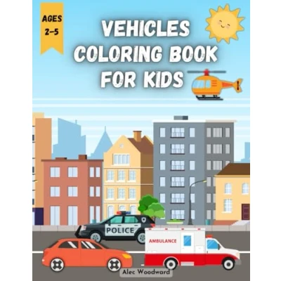 Vehicles Coloring Book For Kids Ages 2 5: Airplane, Helicopter, Truck, Excavator, Subway, Train, Boat and Many Others