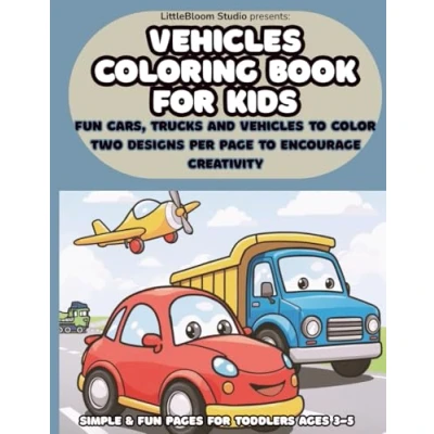 Vehicles Coloring Book for Kids: Fun Cars, Trucks and to Color Two Designs Per Page Encourage Creativity (LittleBloom Studio Books)