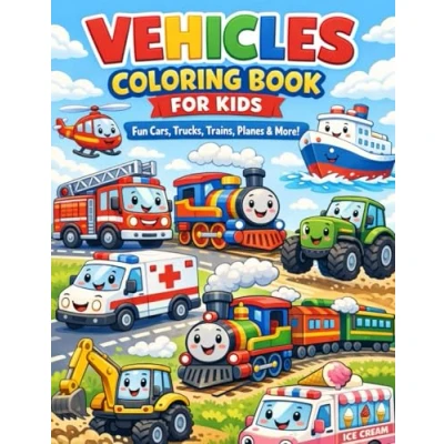 Vehicles Coloring Book for Kids: Fun Cars, Trucks, Trains, Planes & More!