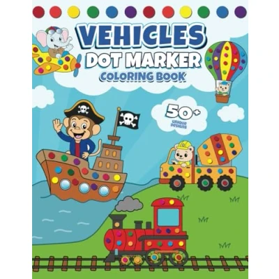 Vehicles Dot Marker Coloring Book: 50+ Markers Activity Book pages with Cars, Trucks, Trains, Space and more for Toddlers Preschool Kids Ages 2 4 3 5 Boys & Girls