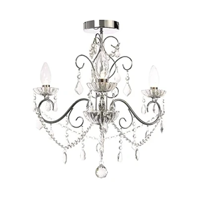 The Spa Vela flush chandelier finished in chrome with clear glass crystal droplets is a stunning light fitting and is a perfect way to enhance your home décor with a stylish and modern piece. The Vela is suitable for all living and dining areas, and, with its IP44 rating, can also be used in bathrooms and other high humidity areas such as kitchens.This 3 light flush chandelier provides a contemporary centrepiece to your home décor.Constructed from steel and glass this fitting requires 3 x G9 bulbs max 3W LED (not supplied).Requires 3 x LED G9 bulbs max 3W (sold separately).