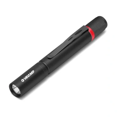 Ultra-bright LED light: 100 lumens; focused beam. Made of aluminum: rust-proof, easy to clean. Dimensions: 129 mm x 19 mm diameter. Ideal for doctors, inspections, precision work. Works with 2xAAA/LR03 batteries (not included). Autonomy: up to 4 hours. With handy pocket clip, this flashlight is ideal for doctors, ophthalmologists, clinics, opticians, industrial precision work...