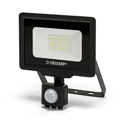 Velamp LED Outdoor Floodlight with PIR Motion Sensor, 20W, 2400 lumens, Cool White Light (6500K), IP44 Waterproof for Garden, Corridor, Indoor and Lighting