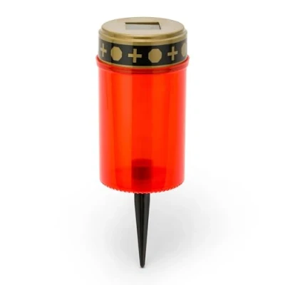 Medium electronic cemetery candle (12 cm x 6.5 cm diameter) with intermittent red light. Equipped with a flashing red light and an ON/OFF switch, it is solar powered: it charges with solar energy during the day and automatically lights up in the dark or at night. Size: height 12 cm x diameter 6.5 cm / light colour: red flashing / tea light colour: red / light duration: 4 hours. Instructions for use: To turn on the tea light, set the switch next to the LED to ON. Equipped with a handy stick to plant the candle in the grass.