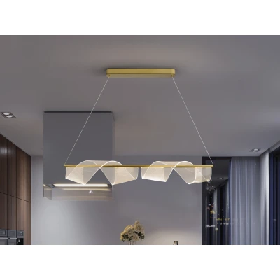 Net LightingLamp made of metal and aluminium, matt gold finish. Curved microprinted methacrylate diffuser. Adjustable length. 21W LED, 1200 lm, 3000K.
