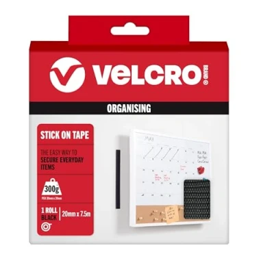 VELCRO Brand Stick On Tape Cut to Length Strong Hook & Loop Self Adhesive Sticky Perfect for Room Décor Home, Office, Garage Use Black 20mm x 7.5m