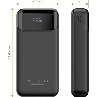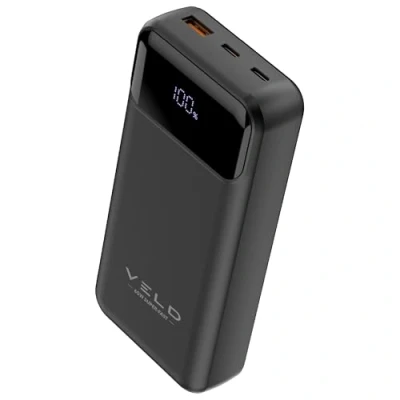 - This Veld power bank's 20,000 mAh capacity gives up to four full charges - Its 65 W Power Delivery powers laptops, tablets and phones fast - Two USB Type-C and one USB Type-A ports let you charge multiple devices at once - The built-in display shows remaining power, so you know when to recharge
