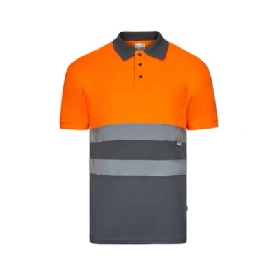 Velilla 173 Two Tone Short Sleeve Polo Shirt Grey & Neon Orange Large