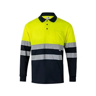 VELILLA 175 High Visibility Polo Long Sleeve T Shirt, Blue and Fluorescent Yellow, XXL