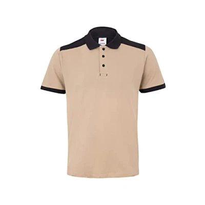 VELILLA Bicolor Short Sleeve Stretch Polo Shirt, Sand Beige and Black, L
