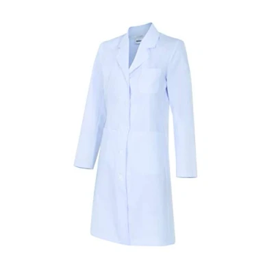 Button closure in the middle - two-piece tailoring sleeves - back cut-out - semi-fitted - clips - three pockets: - 3 patch pockets Features: twill 65 Percent polyester, 35 Percent cotton, 210 g/m² Ladies bathrobe with button closure in the middle. Dressmaking sleeves, two-piece, collar with flap and three patch pockets, two at the bottom and one on the left chest. Belt on the back. Ideal for health, nurses, laboratories, clinics or food, Manufacturer: Velilla