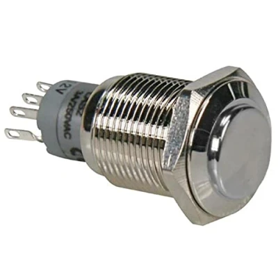 The push button switch is used in industrial controlling circuits Made from nickel-plated brass material The surface is usually shaped to accommodate the human finger or hand Great for electromagnetic starter, relay, horn button switch, PC power switch or any circuit Suitable for 16 mm diameter mounting hole, Weight: 0.04 Pounds, Manufacturer: Velleman